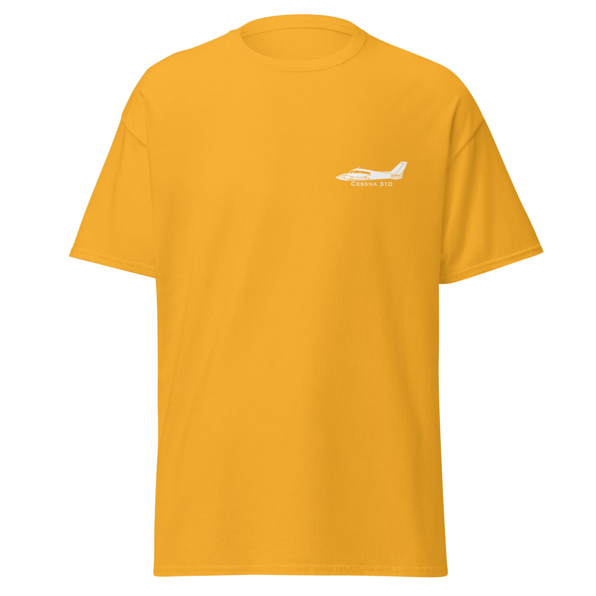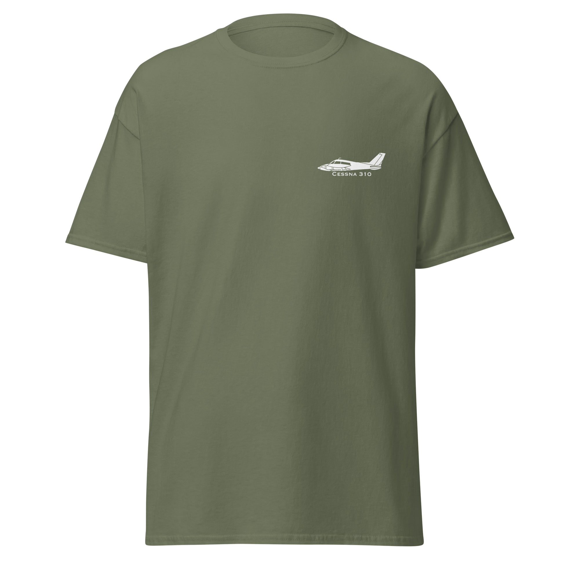 Our Custom Twin Cessna 310 T-Shirt has a 4 inch width detailed airplane profile image on the left chest with the make and model below the airplane image. Tell everyone how proud you are flying this dream flying machine. This is a custom designed shirt by the SkyboundGear artist. No other shirt we have seen captures the distinctive side-profile detail of this plane. How cool is that?