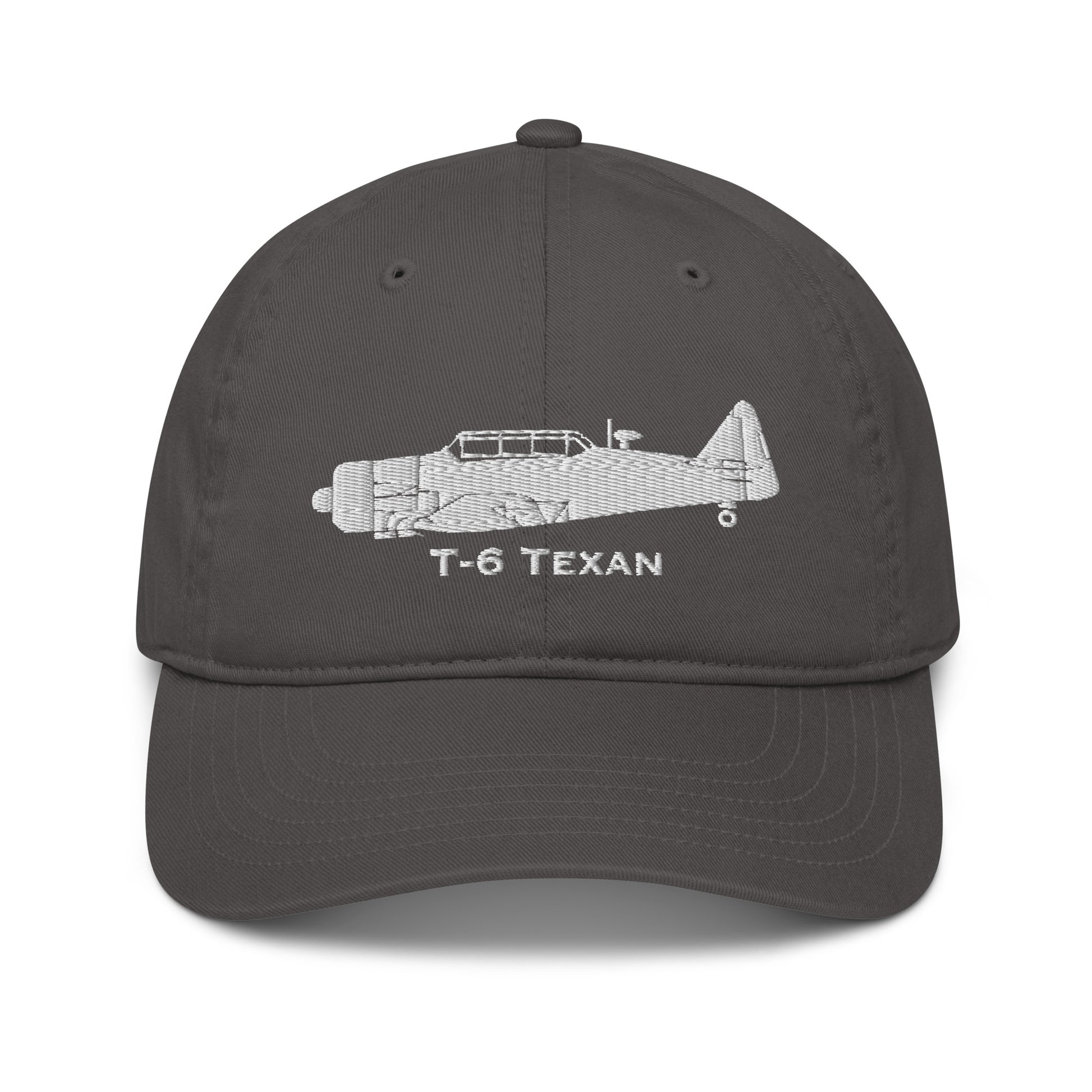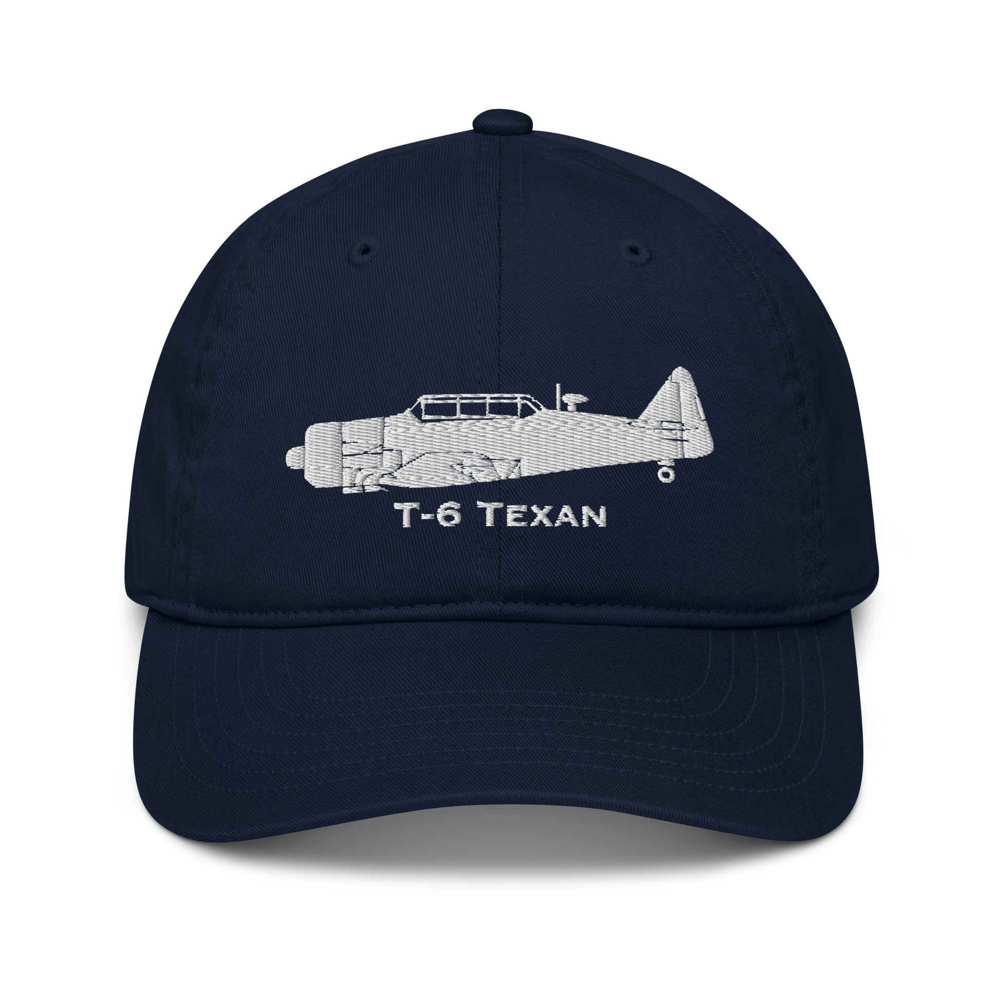 Our custom North American T-6 Texan Embroidered Hat has a detailed airplane profile image with the make and model written below the airplane image in a distinctive font. Tell everyone how proud you are flying this dream flying machine. This is a custom designed ball cap by the SkyboundGear artist. No other hat we have seen captures the distinctive side-profile detail of this plane. How cool is that?