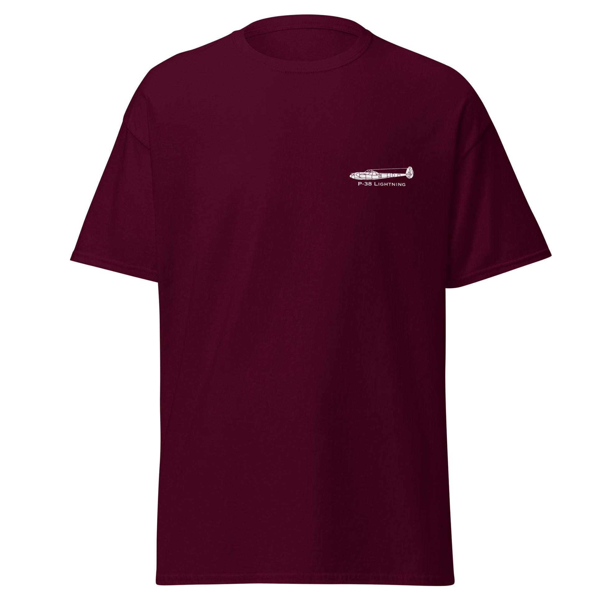 Our Custom Lockheed P-38 Lightning T-Shirt has a 4 inch width detailed airplane profile image on the left chest with the make and model below the airplane image. Tell everyone how proud you are flying this dream flying machine. This is a custom designed shirt by the SkyboundGear artist. No other shirt we have seen captures the distinctive side-profile detail of this plane. How cool is that?