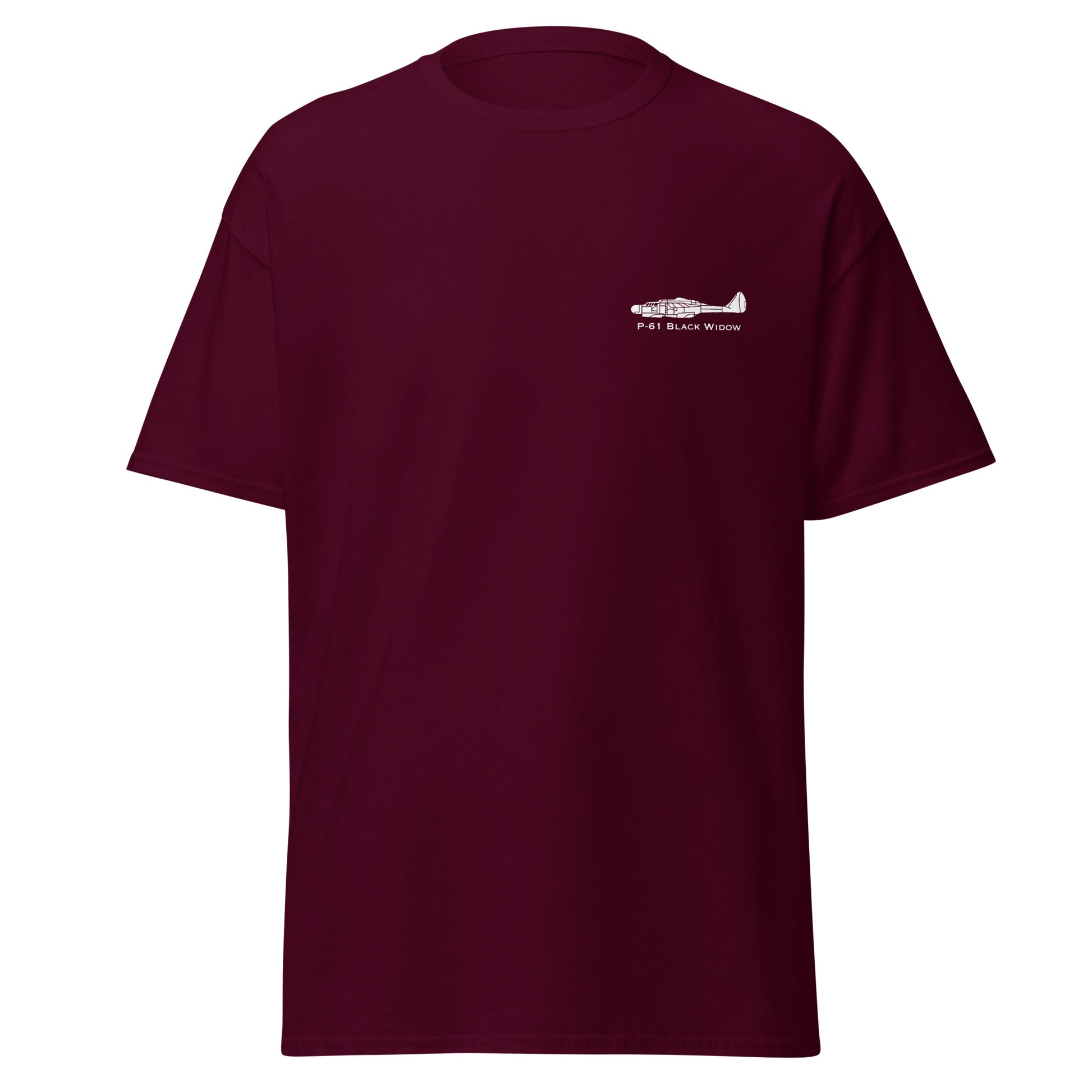 Our Custom Northrop P-61 Black Widow T-Shirt has a 4 inch width detailed airplane profile image on the left chest with the make and model below the airplane image. Tell everyone how proud you are flying this dream flying machine. This is a custom designed shirt by the SkyboundGear artist. No other shirt we have seen captures the distinctive side-profile detail of this plane. How cool is that?
