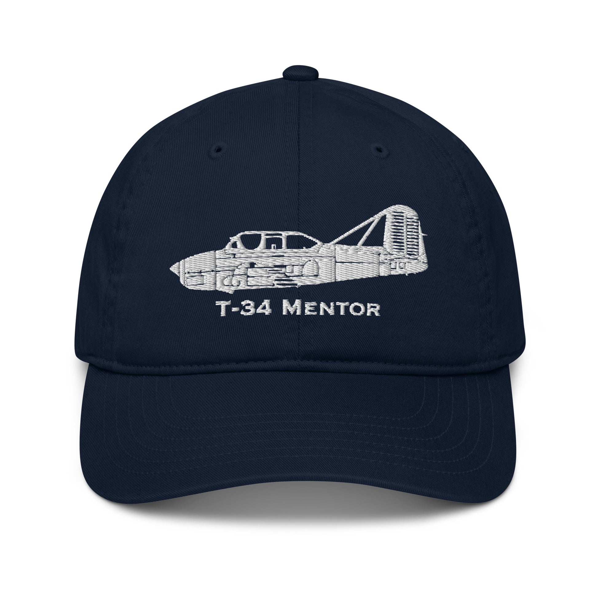 Our custom T-34 Mentor Embroidered Hat has a detailed airplane profile image with the make and model written below the airplane image in a distinctive font. Tell everyone how proud you are flying this dream flying machine. This is a custom designed ball cap by the SkyboundGear artist. No other hat we have seen captures the distinctive side-profile detail of this plane. How cool is that?