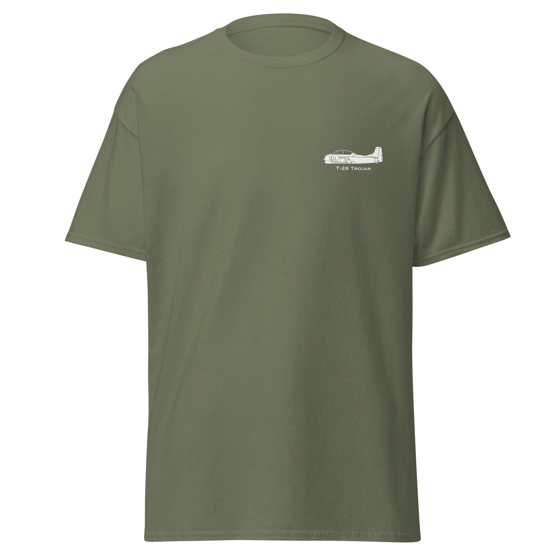 Our Custom North American T-28 Trojan T-Shirt has a 4 inch width detailed airplane profile image on the left chest with the make and model below the airplane image. Tell everyone how proud you are flying this dream flying machine. This is a custom designed shirt by the SkyboundGear artist. No other shirt we have seen captures the distinctive side-profile detail of this plane. How cool is that?